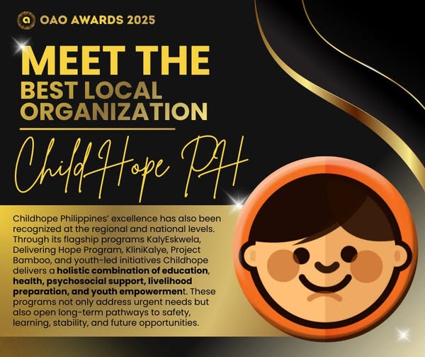 Childhope Philippines has been officially recognized as Best Local Organization at the Open Arms Awards 2025, an honor presented by the Open Arms Organization to celebrate changemakers who are creating meaningful and lasting impact in their communities. The award highlights organizations that demonstrate compassion, inclusion, and sustained commitment to uplifting vulnerable populations.